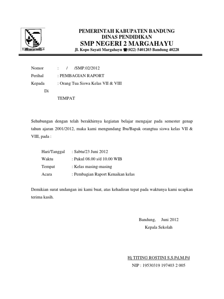 Demikian share contoh surat undangan rapat kepada orang tua wali murid. Contoh surat undangan rapat waliorang tua murid tk surat undangan adalah sebuah surat yang dikirim kepada seseorang agar orang yang dimaksud datang pada. Contoh undangan rapat wali murid. Contoh surat undangan rapat wali murid sd smp sma terbaru 2018 dalam postingan saya kali ini akan membagikan salahsatu contoh surat dinas resmi yang banyak dibutuhkan sekolah pada umumnya. 03, batunadua, padangsidempuan, telp :
